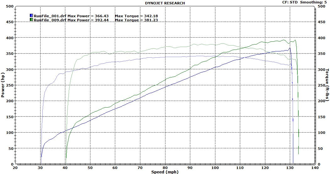 As you can see from the before & after dyno graphs the horsepower and torque gains