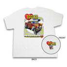 White 100% cotton Hanes Beefy Tee featuring a full-back screen printed Hooker Retro artwork. Retro logo and engine are also featured on the left chest.
