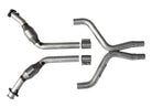 BBK High Flow performance X pipes are designed to maximize the horsepower and torque of your 2011-2017 Ford Mustang 3.7L V6. Every BBK Performancec X pipe is designed as a direct replacement for the factory pipe and features larger diameter 16 gauge 2-1/2 in. CNC mandrel bent amuminized steel tubing with a unique BBK center X section for improved exhaust extraction, along with high flow steel substrate catalytic converters to help increase exhaust flow and maximize performance to the rear wheels. These BBK full catted X pipes will install directly to the factory exhaust headers or any aftermarket shorty exhaust and feature factory O2 sensor placement for simple direct installation. A BBK catted X pipe is the best way to really improve your Mustangs exhaust flow over the restrictive factory pipe to increase overall performance, plus it will sound great with an additional muscle car sound. Please Note. This BBK product is not legal for use in some states including California: Please check your local emission laws and requirements.