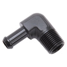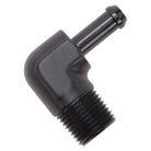 Edelbrock Hose End 90-Deg 1/2In NPT to 3/8In Barb Black Anodize