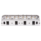 Cylinder Head Specifications: Combustion chamber volume:-?60cc / 70cc, Intake runner volume:-?210cc, Intake runner volume:-?210cc, Exhaust runner volume:-?75cc, Intake valve diameter:-?2.05in, Intake valve diameter:-?2.05in, Exhaust valve diameter:-?1.60in, Valve stem diameter:-?11/32in, Valve guides:-?Manganese bronze, Deck thickness:-?5/8in, Valve spring diameter:-?1.55, Valve spring maximum lift:-?.650in flat, .670in roller (A), Rocker stud:-?7/16in, Guideplate:-?Hardended steel, Pushrod diameter:-?5/16in, Valve angle:-?20, Exhaust port location:-?Raised .130in, Spark plug fitment:-?14mm x 3/4 reach, gasket seat. INSTALLATION NOTE: Check cam manufacturer's specs for compatibility with valve springs. Recommended valve sizes listed. Match with Edelbrock head gasket sets. Use Head Bolt Kits for easy installation. These heads require the use of a 14mm x 3/4in reach, flat gasket spark plug with a heat range appropriate to your application. Deck thickness: 5/8in, rocker stud diameter: 7/16in, pushrod diameter: 5/16in (width of slot in guide plate).