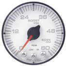 Autometer Spek-Pro Gauge Boost 2 1/16in 60psi Stepper Motor W/Peak & Warn Wht/Blk