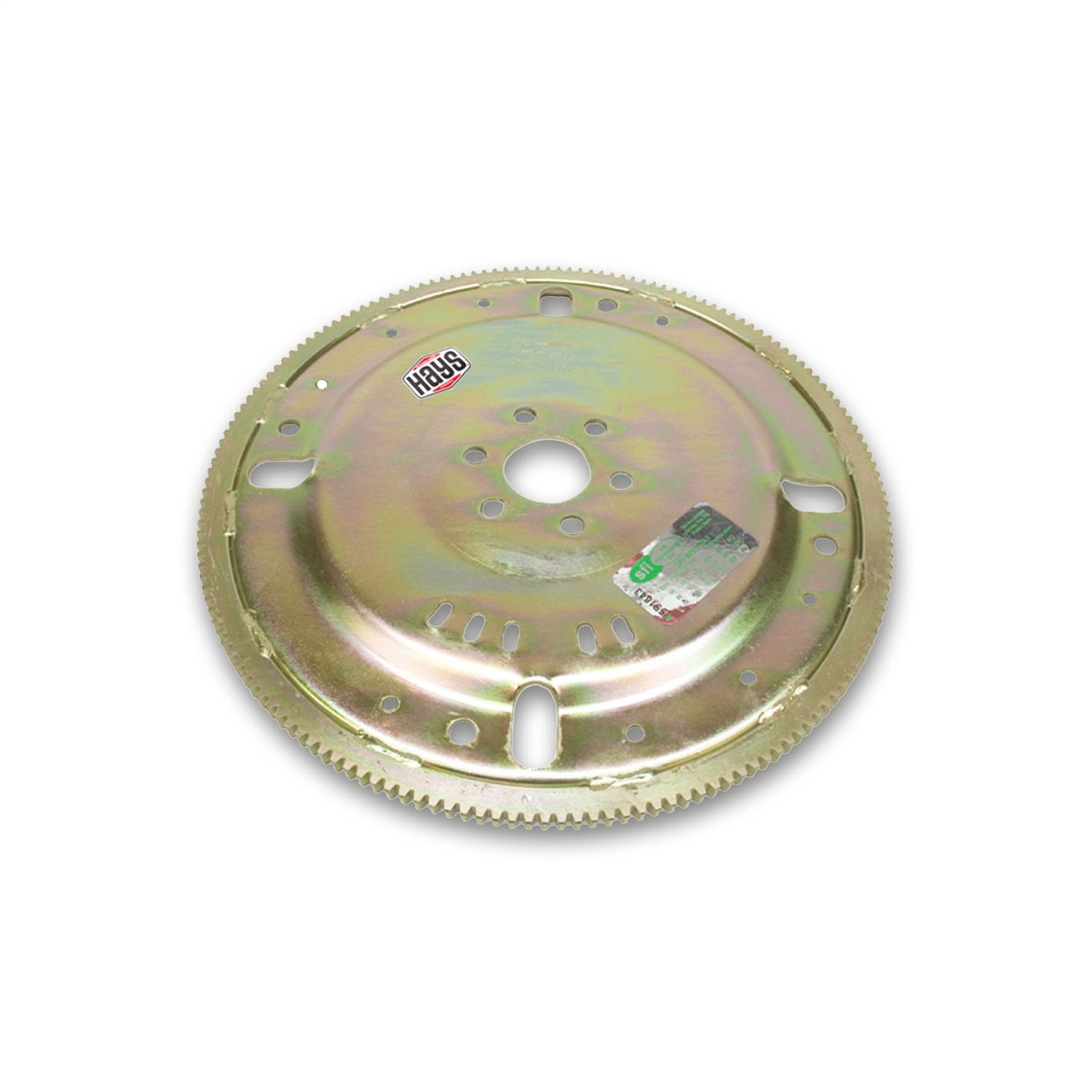 Hays heavy-duty flexplates for high performance and competition engines are constructed of a thicker than stock steel plate, enabling them to withstand the stress of high-stall torque converters and today as high-RPM engines. While factory stock plates tend to crack around the crankshaft hub when punished under high torque and RPM conditions, the thicker Hays Flexplate handles the force. These H.D. flexplates are supplied with a ring gear that is securely welded in place and feature dual bolt patterns for flexibility in adapting to multiple transmission style torque converters. All Hays heavy-duty flexplates are zinc-dichromate plated to resist corrosion and are SFI certified under specification 29.1.