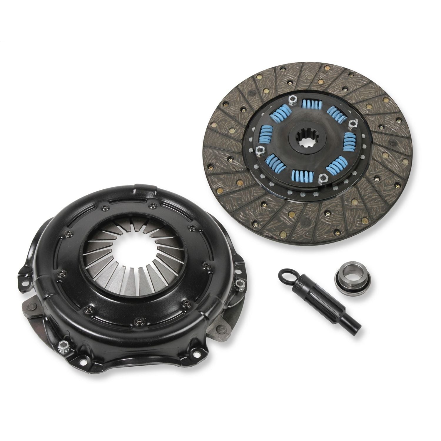 The Street 450 single disc kit is an excellent upgrade from your stock clutch and designed handle mildly modified engines up to 450 horsepower. It is a great clutch where drivability is the most important factor. Our clutch features 30% greater clamping force than a stock clutch allowing you to put more power to the ground and top quality disc material allows for smooth, no-chatter engagement. Each kit includes pressure plate, clutch disc, throwout bearing, alignment tool, and instructions.
