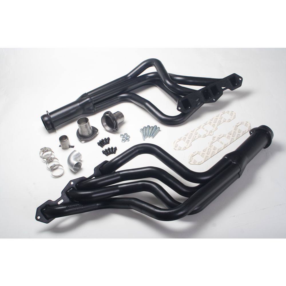 - Contents: headers, gaskets (when applicable), 3-bolt exhaust adapters, hardware