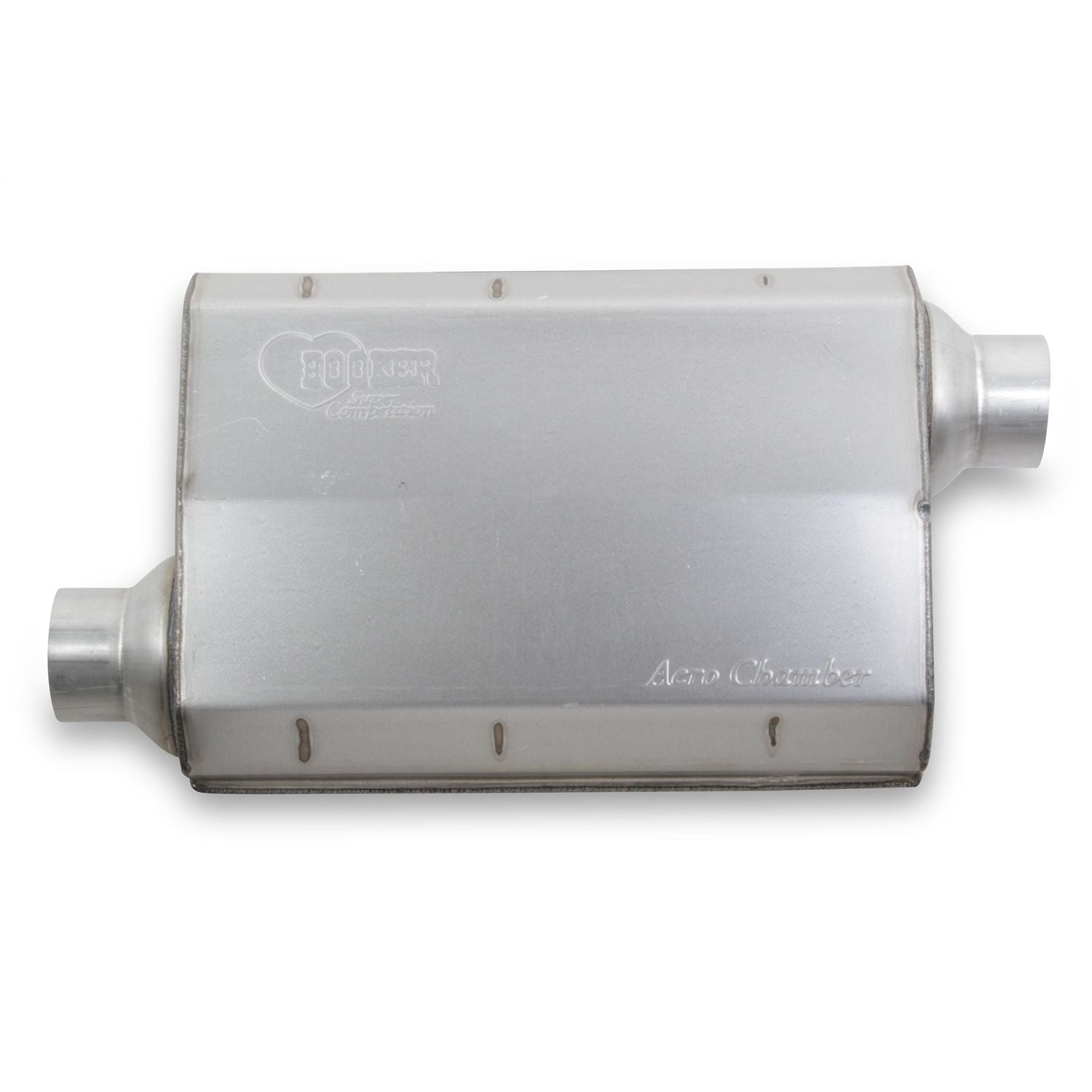 The raw aluminized steel Aero Chamber is designed to do much more than simply muffle exhaust noise. The Aero Chamber Muffler produces a deep throaty powerful sound that will not change with time. The Hooker Aero Chamber uses a unique step principal, similar to that which is currently popular in racing header design. The aerodynamically designed chambers flow 23% better and produce more horsepower and torque than the most popular high performance brand.