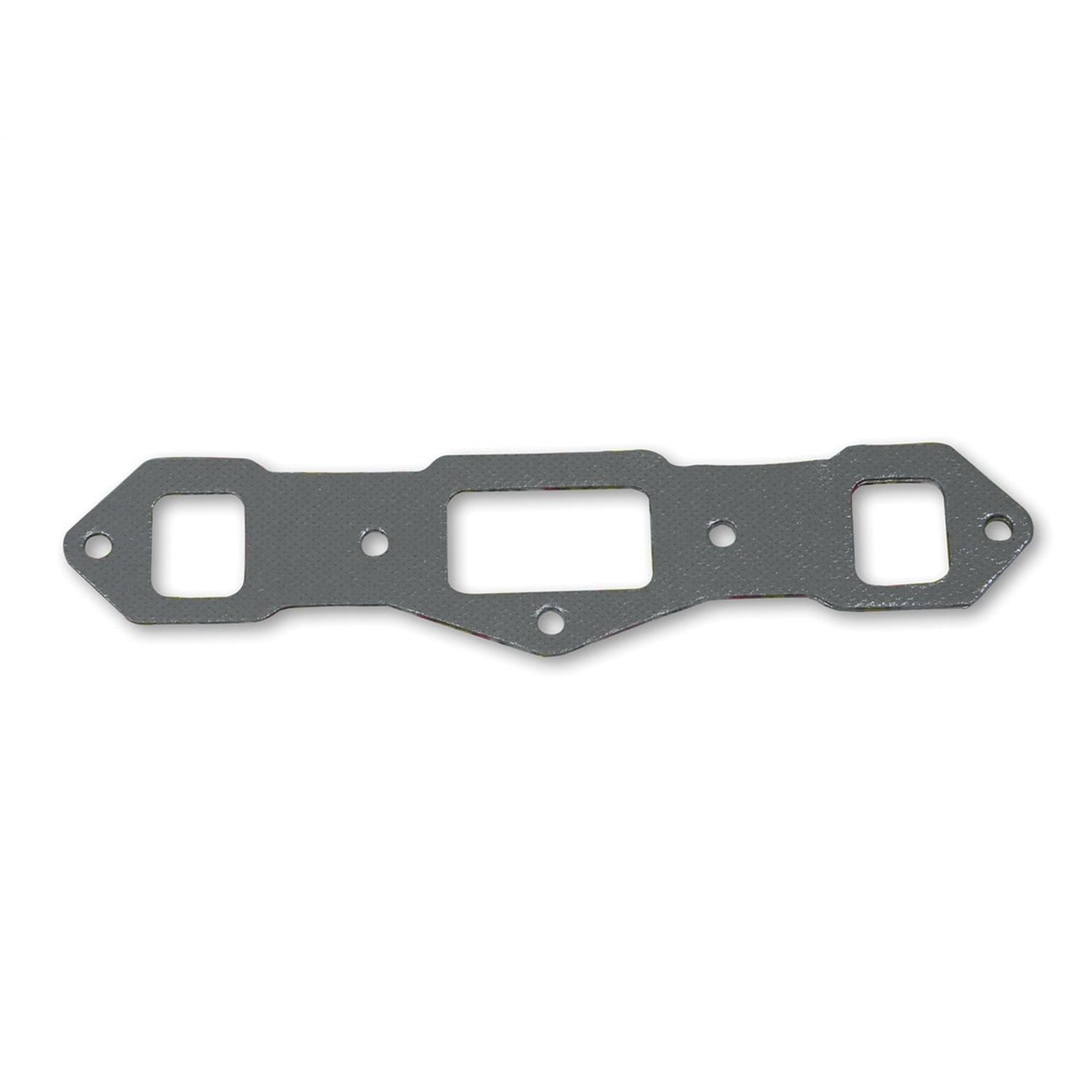Hooker's precision–matched Super Competition header gaskets provide a sure fit and unmatched exhaust sealing. This OEM quality gasket is constructed of a thick .060 inch high temperature, non–asbestos fiber laminate with a perforated steel core, which provides a superior grip and adhesion. This construction also contributes to exact fit compliance between the cylinder head and header flange, offering excellent sealing properties during extreme temperature and operating conditions.