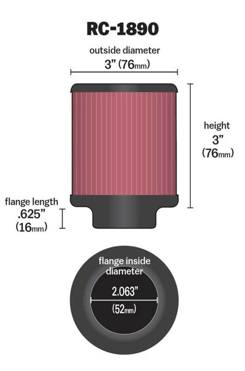 K&N Filter Universal Metal Filter 2-1/16in Flange 3 in OD 3 in Height