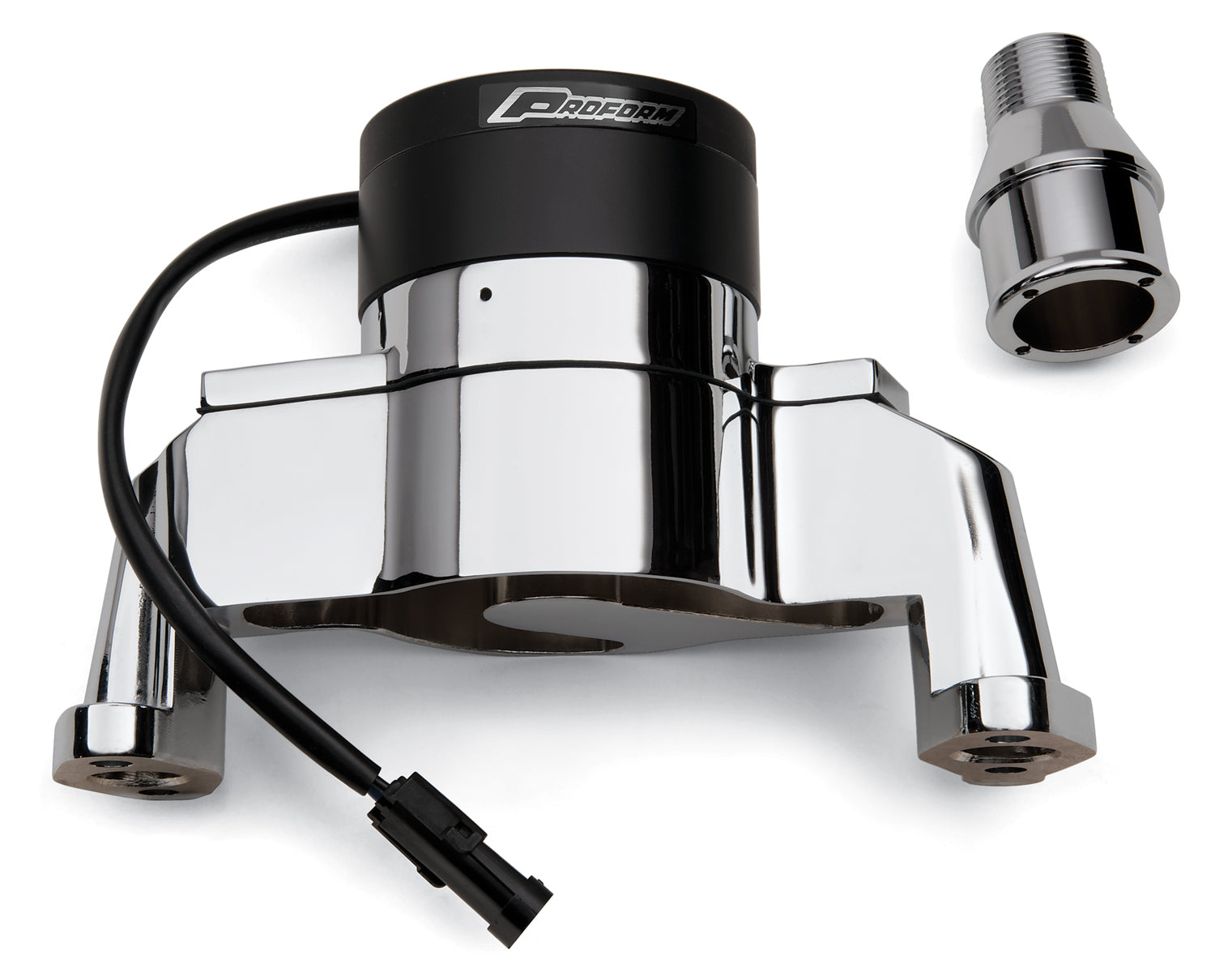 Ever consider going electric? The PROFORM affordable electric water pumps eliminate unnecessary weight and impeller drag experienced at high RPM, pumps up to 35+ gallons of water per minute, and delivers the cooling that can make the difference between a win and second place! Durable but lightweight die-cast aluminum, epoxy powdercoated for corrosion resistance. Race or street. Comes with mating weather-tight connector. Draws 6 amps. Billet fitting 1inch NPT to 1-3/4 inch hose included. Sold individually.