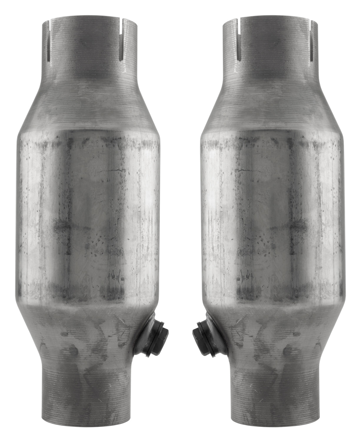 These converters are a made from a high quality 304 grade stainless steel. The ceramic substrate is a durable factory style design. These converters feature a 2.5 inch slip fit design with an overall length of 11 inch. The overall diameter is 4 inch.