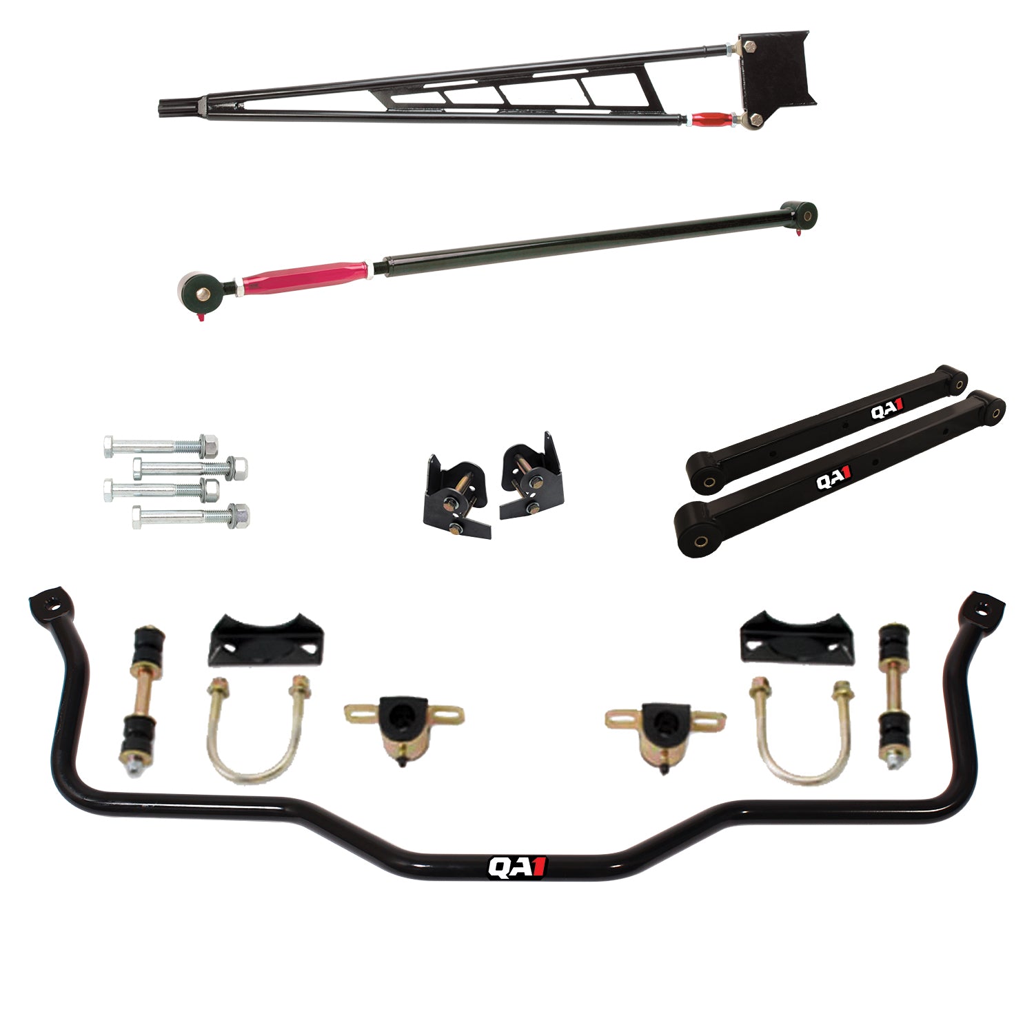 Looking for a better launch, straight line stability and consistent performance for your fourth gen GM F-Body? Turn to QA1's drag racing suspension kits for a full-vehicle upgrade that fits your needs. Available in two different levels of performance, these drag racing kits offers easy, bolt-in installation and seamlessly works with whatever OE component each piece attaches to. Don't want to make the investment right away? No problem. You can build your car in stages, using our parts list as a road map to get to the level of performance you want and have the peace of mind knowing you won't have compatibility issues. These kits include spring rate carefully selected to maximize performance. They are geared towards average weight small block and LS powered vehicles with stock trim. Our level two drag racing kits offer stiffer springs to maximize stored energy for weight transfer. What if the vehicle has been heavily modified from its original weight? No problem. These kits are also offered without shocks and struts to give you the flexibility to order the shocks with the spring rates you want. Please note when ordering the drag racing kit without shocks, the kit will also not include springs, spanner wrenches or thrust bearing kits. .