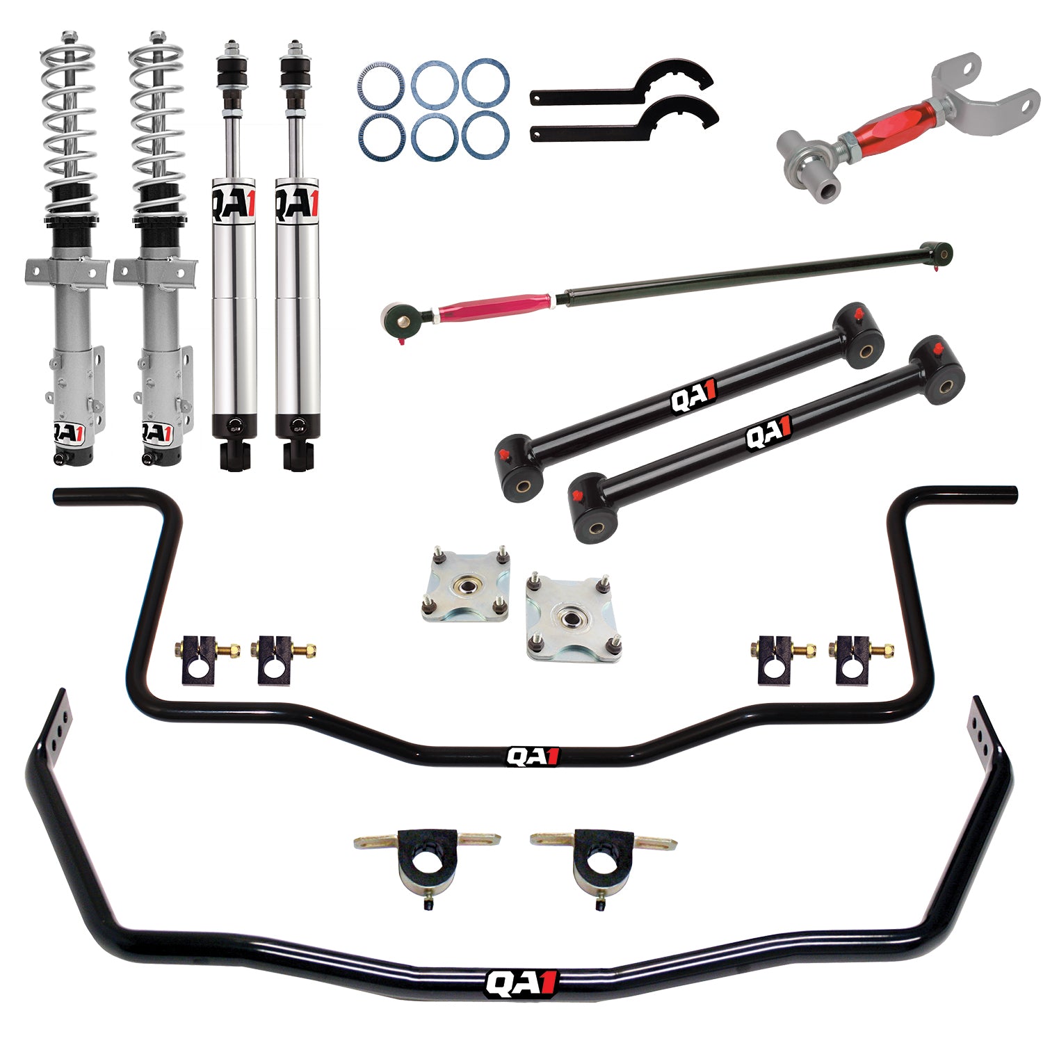 Want better handling for your 2005-2010 Mustang? Turn to QA1's handling suspension kits for the performance level and ride that best fits your needs. Available in three different levels of performance, these handling kits offers easy, bolt-in installation and seamlessly works with whatever OE component each piece attaches to. Don't want to make the investment right away? No problem. You can build your car in stages, using our parts list as a road map to get to the level of performance you want and have the peace of mind knowing you won't have compatibility issues. These kits include spring rates carefully selected to maximize performance while maintaining a smooth, comfortable ride. They are geared towards average weight vehicles with stock trim. Our level three handling kits offer stiffer springs to maximize cornering performance. What if the vehicle has been heavily modified from its original weight? No problem. These kits are also offered without shocks and struts to give you the flexibility to order the shocks or struts with the spring rates you want. Please note when ordering the handling kit without shocks, the kit will also not include springs, spanner wrenches or thrust bearing kits. .
