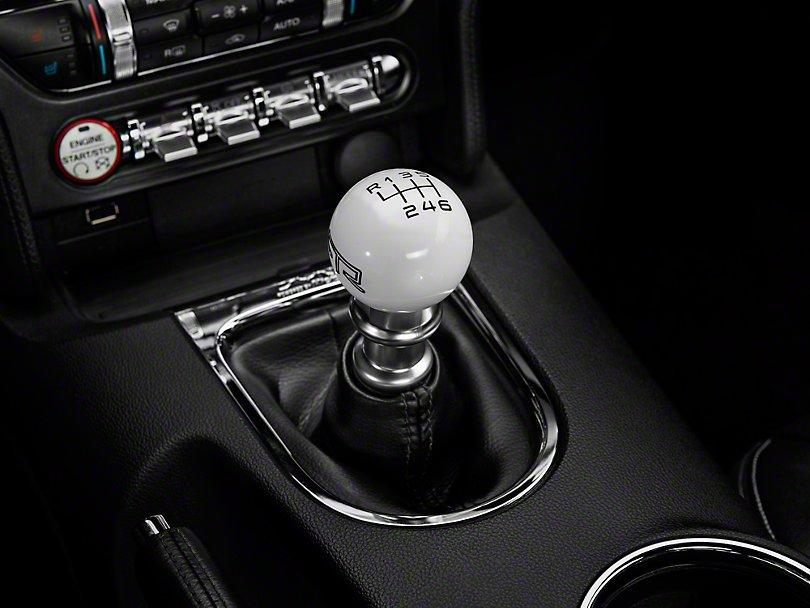 RTR White Shift Knob - Black Engraving - 2015-2023 Ford Mustang GT, Ford Mustang Ecoboost, Ford Mustang V6