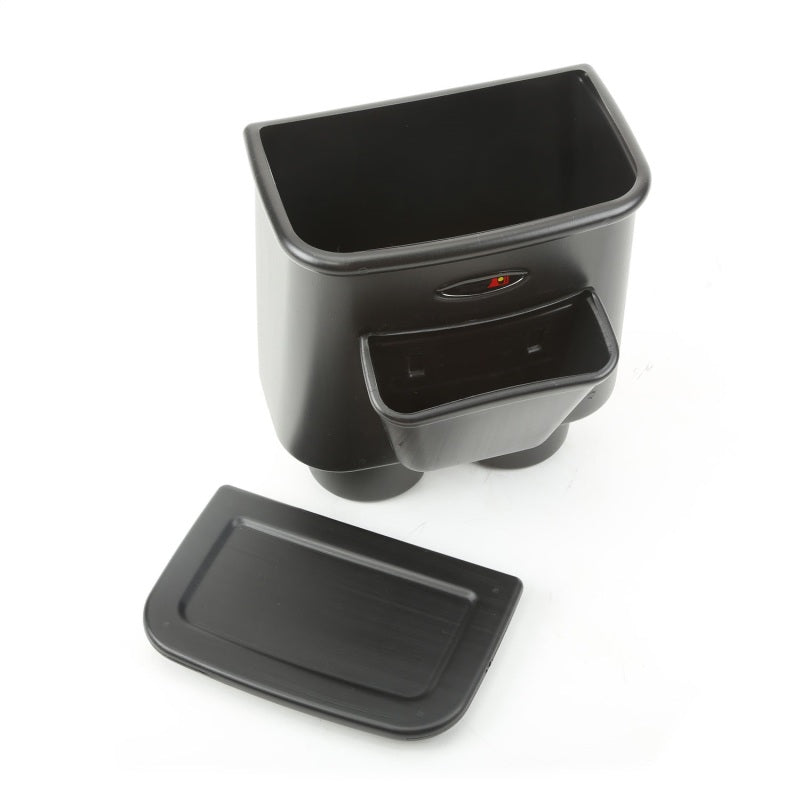 The perfect organization solution for your Jeep! The new Rugged Ridge Back Seat Organizer features two separate storage areas to organize wayward trash, toys, drinks, iPods and other clutter. Each organizer is designed to instantly fit into the rear cup holders of your 2007-10 Jeep Wrangler and includes a removable double walled lid. The large storage area will hold up to three 12oz. soda cans or two 16.9oz. water bottles with ice. The top lid can be easily removed creating a handy writing surface or small tray. The front tray can keep cell phones, iPods or other small items from rolling around the back seat. Easily removable to clean and empty, this truly is a must for your Jeep!