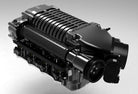 - Front feed supercharger utilizes precision ground helical cut gears vs a problematic belt