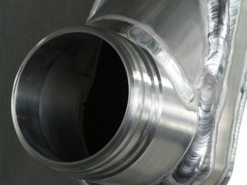 Bladerunner Intercoolers represent the next generation of intercoolers. The Bladerunner intercoolers utilize a 3 in. bar and plate design that out performs OE style tube and fin core designs. The end tanks are constructed out of 3/16 in. TIG welded aluminum plate tanks that incorporate three multi-directional vanes that efficiently direct air flow through the entire core for maximum cooling. The Bladerunner intercooler also comes with 4 1/8 in. pre-tapped ports for easy gauge installation as well as other auxiliary input options. Tested at 200psi which is perfect for the high boost applications. In recent testing the Bladerunner intercooler produced a 200 deg. temperature drop and a 100 deg. EGT drop as well as increasing air flow by 30 percent. Dont waste your time and money on modified factory intercooler. Invest in the aFe Bladerunner intercooler. the most sophisticated intercooler design on the planet.