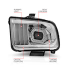 ANZO 2005-2009 Ford Mustang with Factory Halogen HL Only Projector Headlights with Light Bar Chrome Housing