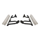 Side rail and combination steps to protect the front quarter panels and lower sills. The integrated step offers improved vehicle access. While they offer an excellent barrier against rock ledges, they are not considered a true rock slider that might be required for aggressive rock crawling.