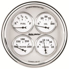 Sometimes Space Is Limited. The Autometer Quad Gauge Provides A Solution To Limited Dashboard Space While Providing A Clean Look. Individual Autometer Air Core Meter Movements For Each Function Provide The Accuracy And Durability Required By Even The Most Demanding Applications. Includes A Single Wire 1/8" Npt Temperature Sender And A 1/8" Npt Oil Pressure Sender. The Voltmeter Reads From 8-18V On Negative Ground Electrical Systems And Fuel Level Resistance Range Is 240 Ohms Empty To 33 Ohms Full (Compatible With Autometers 3262 Fuel Level Sender).