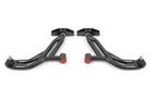A-arms are one of the most important, yet overlooked suspension components. They are the direct link between the front wheels and the chassis. Any deflection causes a change in alignment, which results in poor performance and driving feel. Fabricated from heavy-duty 1.25-inch, 0.120-inch wall DOM tubing, deflection is eliminated with A-arms from BMR Suspension. BMRs AA750 Lower A-arms are equipped with greasable heavy-duty ball joints, 95-durometer polyurethane bushings (front mount), and greasable Delrin bushings (rear mount) to handle the high loads. Polyurethane bushings add a solid, more responsive feel over the stock rubber bushings. BMRs bushings are internally fluted, which allows grease to evenly coat the inner sleeve. These flutes also direct grease to the outer edge of the bushing, keeping the thrust surface lubricated. This efficient lubrication ensures quiet, reliable operation over the life of the bushings. The combination of poly and Delrin bushings gives you improved steering feel and responsiveness for any for of driving. BMRs AA750 lower A-arms eliminate A-arm deflection, greatly improving steering feel and response in normal and performance driving situations. The polyurethane and Delrin bushings add strength and reduce deflection over the stock rubber bushing, while still absorbing much of the NVH. The means you get a great blend of performance and comfort. Designed for street performance, drag race, and handling, and pro-touring applications, BMR lower A-arms are engineered to give you improved geometry and increased lateral grip during cornering situations. BMR Suspension AA750 Non-Adjustable Lower A-arms are available in black hammertone and red powdercoat for long-lasting good looks. Installation time is 3-4 hours. Proudly made in the U.S.A. Control arm hardware kit RH014 (Includes upper and lower control arm hardware - Highly Recommended) also available.