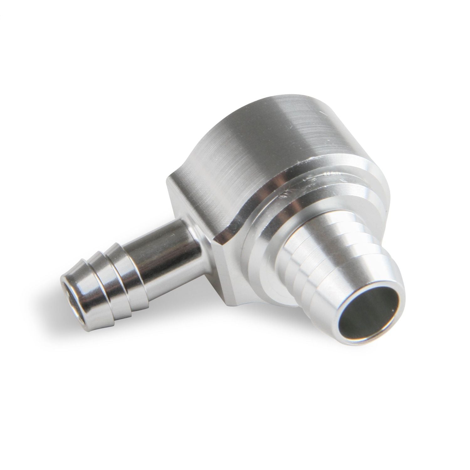 Earl's billet aluminum brake booster check valve replaces the OEM plastic valve for a clean custom appearance. Choose from black or clear anodized finish & (3) vacuum hose options (3/8" hose barb, 1/2" hose barb, or -6 AN male flare). Fits most brake boosters or vacuum canisters w/ 13/16" port (inside diameter of the grommet on the brake booster).