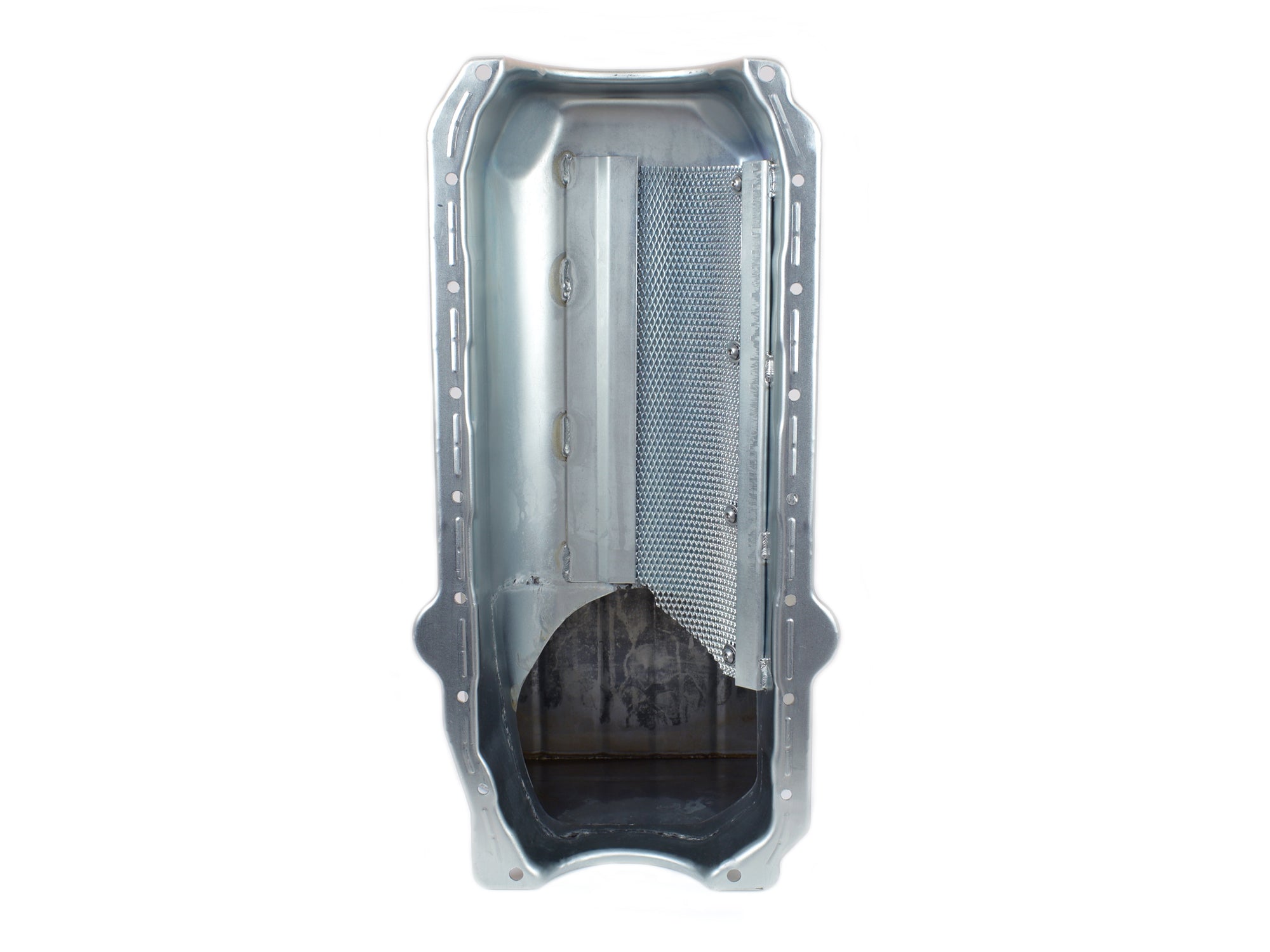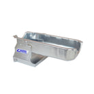 This Drag Race Oil Pan is for pre-?85 Small Block Chevys with left side dipstick. It is designed to convert a Chevy II without power steering to a rear sump. It has a 8-1/2" deep by 10-1/2" wide sump and a 6 qt. system capacity. Clears a 3.875" stroke with a steel rod. Will work with stock & aftermarket starters with 153 or 168 tooth flywheel. This pan requires one of our pickups.