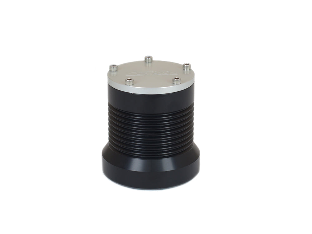 This 4.25" tall billet spin-on filter has 13/16"-16 threads and a standard size o-ring. Like all CM filters it features a billet aluminum body built for strength and durability for a lifetime of use. Heat sink ribs add to filter's functionality and aggressive aesthetic. The filters bottom cap is easily removed with four bolts for filter element inspection and replacement. A CM 2-5/8" tall synthetic fiber filter element which flows 15 GPM of hot engine oil with no loss of pressure and filters down to 8 microns comes preinstalled.