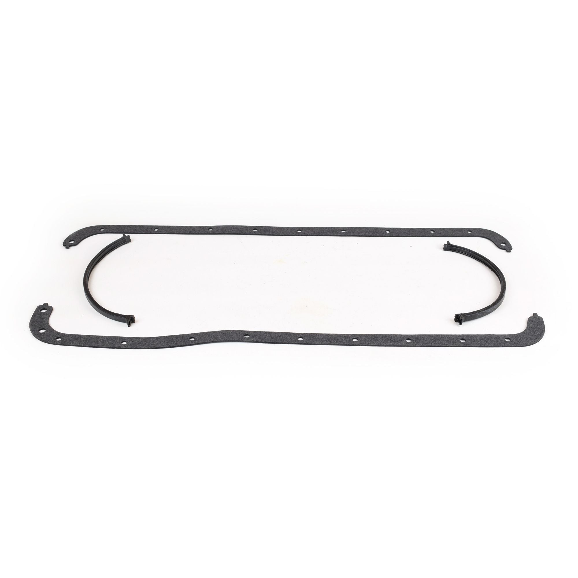 BBF 429-460 Four Piece Oil Pan Gasket With Fibrous Compound Rails. NOTE: Our Ford One Piece & Four Piece Oil Pan Gaskets are NOT Interchangeable. The Ford Oil Pan Stamping That Is Used With A Four Piece Oil Pan Gasket Is Different Than The Stamping That Is Used With The One Piece Oil Pan Gasket. The Four Corners Where The Oil Pan Turns Down To Go Around The Timing Cover Or The Rear Main Cap Are Sharper On The Four Piece Gasket Oil Pan Than The One Piece Style Oil Pan. For A proper Seal You MUST Use The Gasket Style That Is Appropriate For The Oil Pan You Are Using.