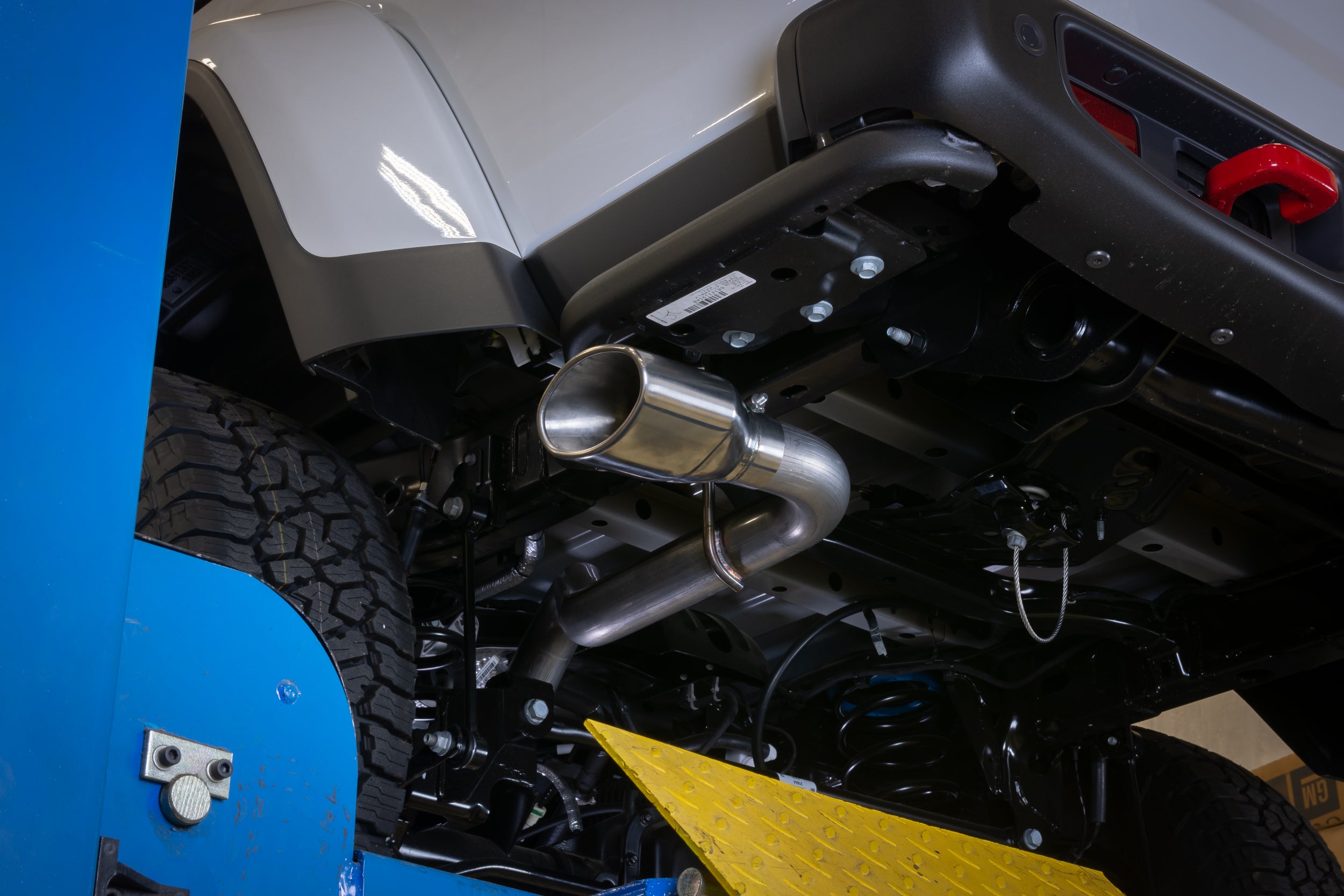 - Single Side Exit Behind Driver Side Rear Tire