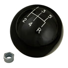 Solid high gloss, high strength plastic. 1-7/8 in. diameter with engraved inlaid shift pattern and molded-in brass thread insert. Complete with jam nut.
