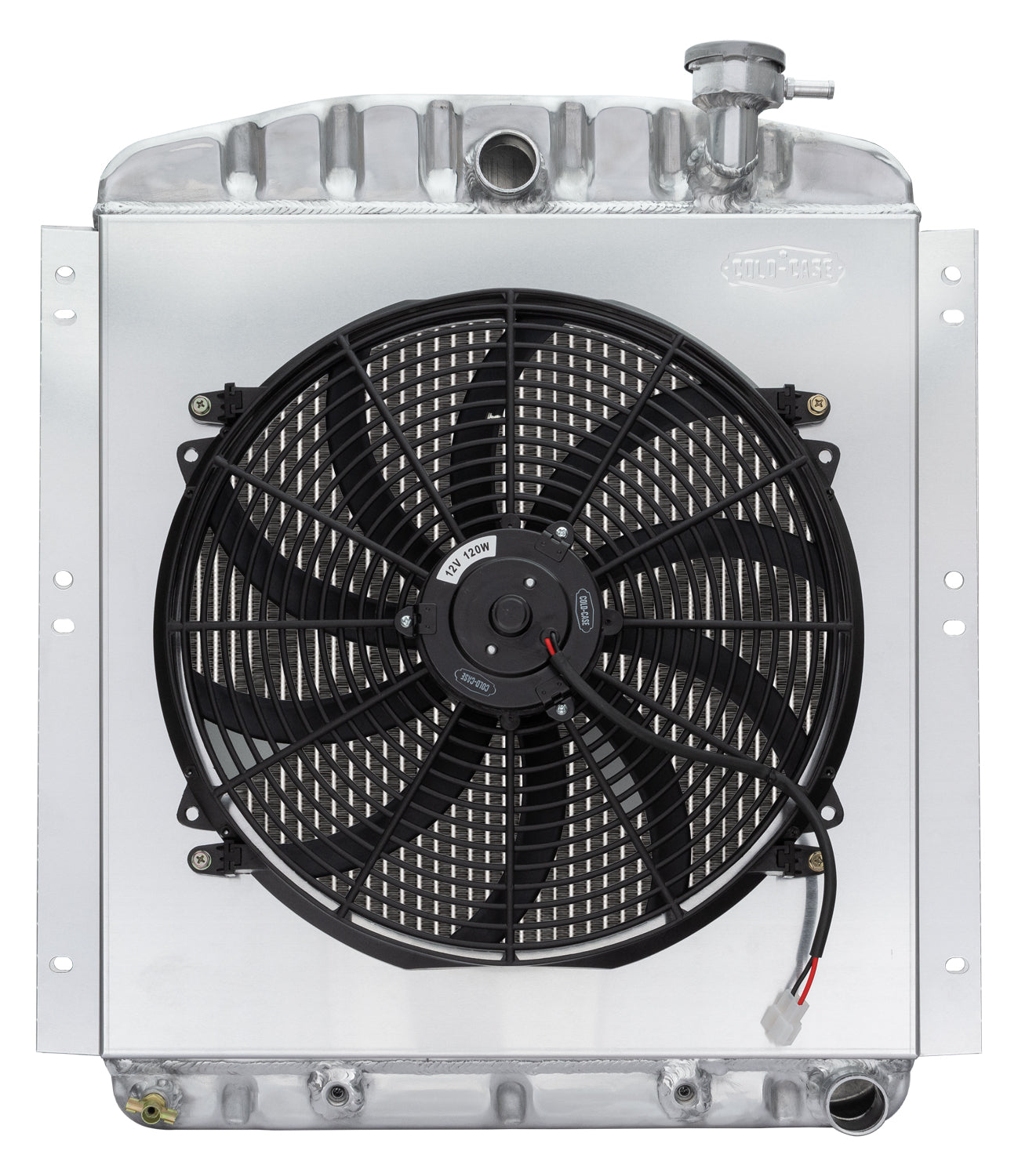 1948-1954 GMC Truck Aluminum Performance Radiator with single 16 inch Fan and Shroud Kit. These COLD-CASE radiators are Tig-welded 100 percent aluminum and absolutely beautiful.