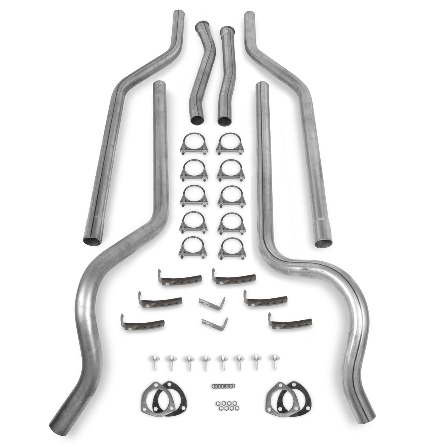Designed to fit Hooker Competition header, Manifold or catalytic converter back applications. Cat–back kits install behind the converter and all other applicable emission control devices.