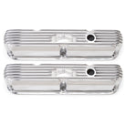 Edelbrock first made these aluminum valve covers in the late 50s and theyre still a classic. Made of heavy-gauge sand-cast aluminum, our classic finned valve covers are available in either a classic polished aluminum or durable black powder.