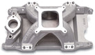 SUPER VICTOR S/B CHRYSLER (3500-8000 RPM) Designed for small-block Chrysler engines with conventional rectangular port heads like Edelbrock Performer RPM cylinder heads or Victor heads, this single-plane Air-Gap style manifold operates from 3500 to 8000 rpm. Testing has shown substantial mid range gains over the current designs. The runners have been cast in such a way to insure enough metal thickness to allow for gasket matching and porting. Accepts 1975 and earlier waterneck only. * Recommended intake gasket: Edelbrock #7276. Manifold ht.: A-6.30", B-6.30". Port exit dimensions .98"x 2.15".