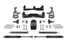 Fabtech's new 4'' F150 system utilizes their proven heavy duty construction and design features found in their 6'' systems but with less lift and at a much lower price. This 4'' System allows use of 35'' tall tires and features high arched lower control arm crossmembers constructed of 1/4in thick steel for maximum strength. The Fabtech ductile iron steering knuckles retain the stock track width keeping tires under the fender for a clean appearance. Rear lift is accomplished with a block and u-bolt configuration. The Basic System includes heavy duty front Coilover shocks for increased dampening capacity while retaining the factory coil springs and Fabtech's Stealth rear shocks. The 4'' System allows use of 33'' or 35'' tires and is ESC (Electronic Stability Control) and Traction Control compliant.