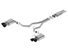Ford Racing has partnered with industry leader Borla(R) Exhaust to offer the first in a series of Ford Racing by Borla(R) systems for the new 2015 Mustang. This cat-back system is constructed from ultra-smooth mandrel bent 300-series stainless steel tubing that is designed and fit to Ford Racing specs. This 2.5 in. cat-back exhaust system will give you an aggressive muscle car sound. This cat-back exhaust system with integral X-pipe bolts directly to the stock factory catalytic converters, making your Mustang 100% emission compliant. These tuned stainless steel mufflers with 4 in. chrome-plated stainless steel tips not only sound great but look great too.
