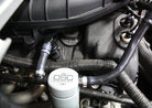 During the process of venting crankcase pressure back through your intake track, large amounts of oil, in the form of vapors can gather/accumulate in your intake tube, intake manifold runners and even dilute your gas, lowering its octane level. This happens on all engines and is even worse with forced inducted vehicles (supercharged and turbocharged) as crankcase pressures are increased. To combat this, we have developed an oil separator of our own design. Milled from solid billet aluminum this is a rock-solid piece. It has a knurled tank base for easy removal to drain the spent oil and an O-ring seal to prevent any leaks. Filtering consists of a fine mesh stainless steel screen that traps fine oil vapors and releases them once heavy enough to fall. They then pass through a 1/2" thick 1/16th" aluminum honeycomb filter where they grow every larger and then fall into the bottom. By the time the oil gets through the filter it's too heavy to be passed on into the intake. The tank holds 3 oz of fluid, while that may not sound like a lot, you shouldn’t see that much oil in your PCV system. Drain it every 2000-3000 miles and you will never come close to filling it.