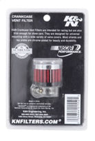 K&N crankcase vent filters are perfect for racing applications, vintage cars or individuals who want to add some aesthetics to their classic carbureted engine. The 62-2470 crankcase vent filter has a K&N embossed chrome top and chrome base. The 9/16 inch flange is designed to clamp on to the existing rubber breather grommets. Constructed with a synthetic filter media it can be cleaned and reused repeatedly. A pillow pack of K&N air filter oil is included.