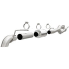 The MagnaFlow Off-Road Pro Series Cat-Back Performance Exhaust System 17200 brings additional off-roading prowess and our deep signature exhaust note to your 6.2L 2011-2016 Ford with a weight-optimized, dyno-tested, corrosion resistant and durable stainless steel design engineered to closely hug the undercarriage for improved ground clearance. Exhaust kit 17200 is engineered to produce Very Aggressive exterior and Aggressive interior sound levels. Extensive 3D scanning was used during the development of this Ford exhaust system to create a direct-fit design, enabling a do-it-yourself installation process. 17200's emissions-legal cat-back design replaces all your truck's exhaust components from the catalytic converter on back with its 3.5in. diameter mandrel bent main piping that passes through 1 Straight-Through mufflers before ending in a turndown before rear axle exit with 3.5in. Satin Clamp-On Single Wall Turndown Cut Edge tips. Exhaust system 17200 is produced using advanced CNC precision robotic manufacturing techniques and backed by MagnaFlow's limited lifetime warranty.