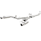 The MagnaFlow 2015-2023 Ford Mustang Competition Series Cat-Back Performance Exhaust System 19191 brings an aggressive, attention-grabbing edge to the deep resonant exhaust note we're so well known for. This exhaust kit is designed to enhance your 2.3L 2015-2023 Ford Mustang with dyno-proven performance made possible thanks to fast-flowing mandrel bent 2.5in. main piping and 2 Straight-Through mufflers ending in a Dual Split Rear exit with 4.5in. Polished Welded-On Double Wall Angle Cut Folded Edge tips featuring a sporty finish. The exhaust system's cat-back layout replaces your ride's exhaust system from near the catalytic converter on back. Exhaust system 19191 is engineered to make your vehicle's engine produce Aggressive exterior and Moderate interior sound levels, befitting its competition-oriented design. 19191's direct-fit design makes installation a breeze thanks to the use of advanced 3D scanning techniques. This performance exhaust system is made of 100% durable and corrosion-resistant stainless steel and produced using CNC precision robotic manufacturing, all backed by MagnaFlow's limited lifetime warranty. Please check to ensure compliance with local noise regulations.