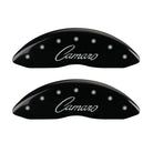 MGP 4 Caliper Covers Engraved Front & Rear Cursive/Camaro Black finish silver ch