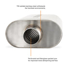 How much you enjoy driving your car or truck is directly proportional to how good it sounds. No matter how much power it makes or how well the chassis is sorted, a well-designed exhaust can mean the difference between an exciting drive and a dull commute. At Mishimoto, we offer a variety of components to make your exhaust suit your vehicle and your taste, from pipes to V-bands and now resonators and mufflers.----Our universal stainless-steel mufflers are designed to bring your exhaust to life without blowing out your eardrums. The perforated, fiberglass-packed, straight-through core takes some of the volume out of your exhaust while still letting your engine growl and breathe freely. The brushed stainless-steel body and precision TIG welds add a sleek look to your exhaust and withstand even the harshest environments. Our mufflers are available with 2.5-inch ID center inlet/outlets or 3-inch ID offset inlet/outlets to easily fit your vehicle's layout. Like all Mishimoto exhaust parts, these mufflers are backed by our Mishimoto Lifetime Warranty to ensure your car or truck sounds its best for a lifetime to come