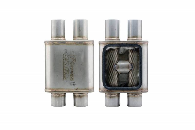 Pypes Cat-Back Exhaust System 2015-2017 Mustang GT 3in Diameter Split Rear Dual Exit 4in Polished Tips Hardware Included H-Box Muffler Natural 409 Stainless Finish Exhaust