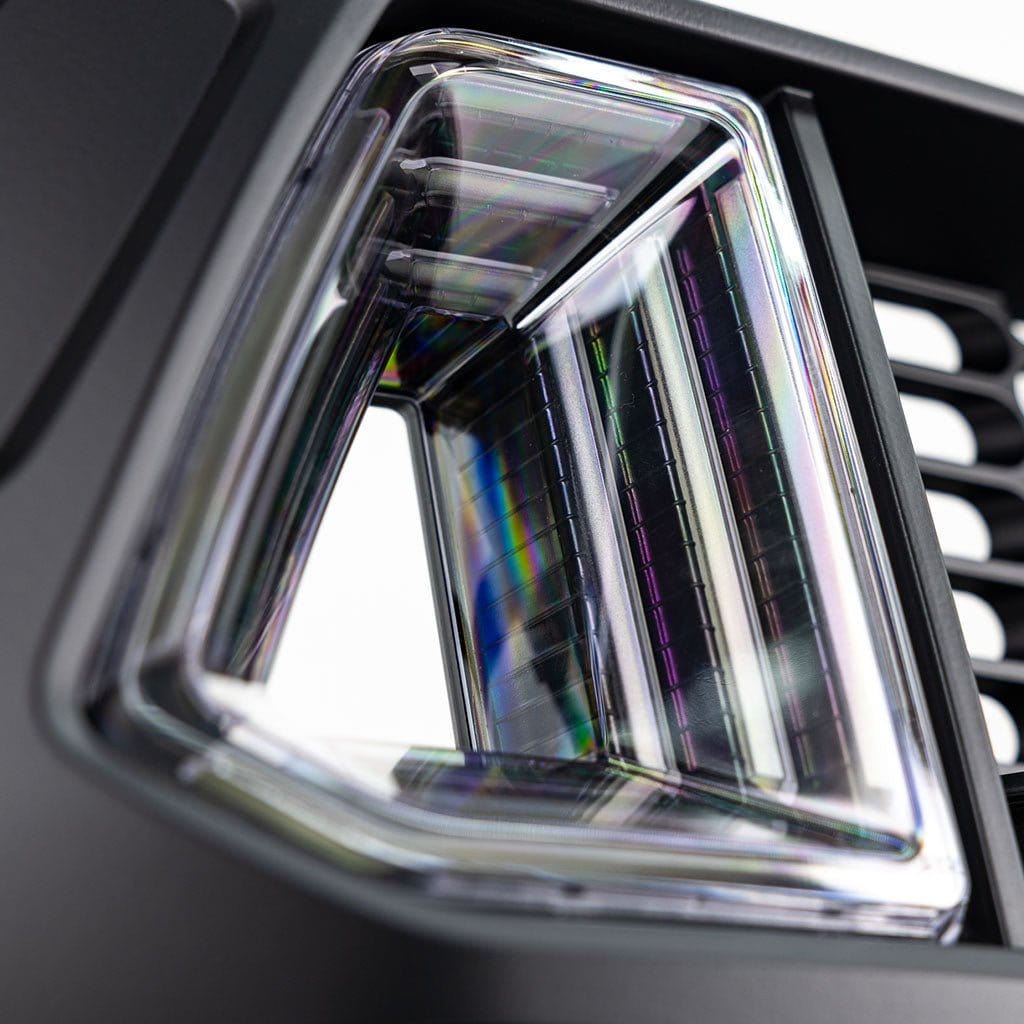The LED intakes are thoughtfully designed to match the factory color temperature, providing a cohesive and integrated look. The LED lenses are UV hard-coated for long-lasting durability and clarity. For a hassle-free installation, the RTR Upper Grille has a convenient plug-and-play wiring harness for the LEDs intakes, eliminating the need for complex modifications.