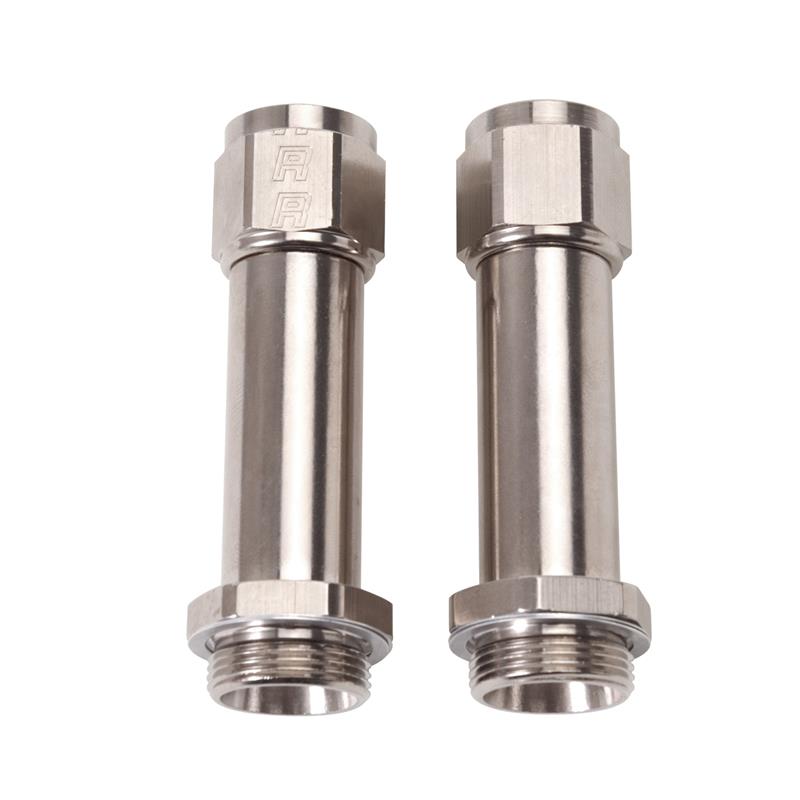 Russell's wide variety of lightweight aluminum adapter fittings allow for the connection of Russell hose ends to almost any component. Adapters are offered in standard thread, metric thread and pipe thread to fit most popular oil pumps, fuel pumps, fuel filters plus a variety of other common components. To compliment the looks of the hose installation, three finishes are available - ultra-bright Endura, traditional blue anodized or our new black anodized fittings.