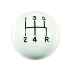 Solid high gloss, high strength plastic. 1-7/8 in. diameter with engraved inlaid shift pattern and molded-in brass thread insert. Complete with jam nut.