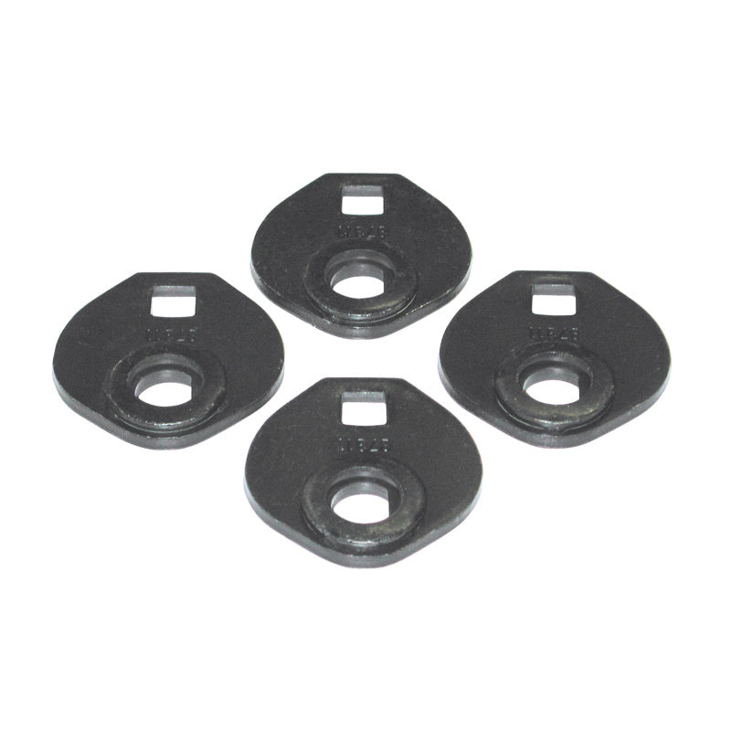 This set of 4 cams allows for quick installation without having to remove the upper control arm bolt. Change camber and caster up to +-1.75deg. California Residents WARNING