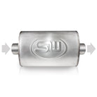 Turbo S-tube muffler, Made from 304 stainless steel for maximum corrosion resistance. This muffler has 3" ID center inlet and a 3" OD center outlet with a 2-1/2" core and shell size 5" x 9" x 14" with an overall length of 18" with a mill finish. Stainless Works is the only manufacturer to make the body, core, and packing out of 304 stainless steel. Exclusive louvered core creates a sweet "Street Rod" deep tone that is very aggressive. These are TIG welded for strength and durability. These kits come with a lifetime warranty and proudly made in the USA.
