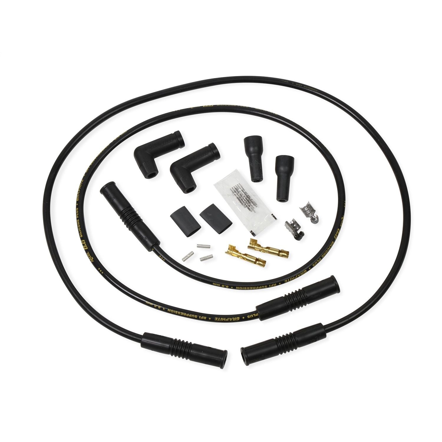 ACCEL Motorcycle 8.8mm spark plug wires provide the best in performance and reliability for street or racing use. Each spark plug end is pre-terminated with either a 90 degree or a pliable variangle heavy-duty spark plug boot. The easy to install hardware kit includes brass locking terminals with boots for male or female type coil ends and easy to read instructions. Each set comes with a complete hardware kit and ACCEL's famous premium quality.