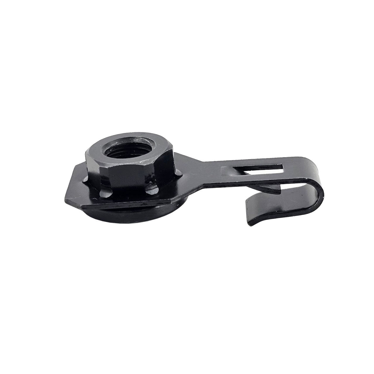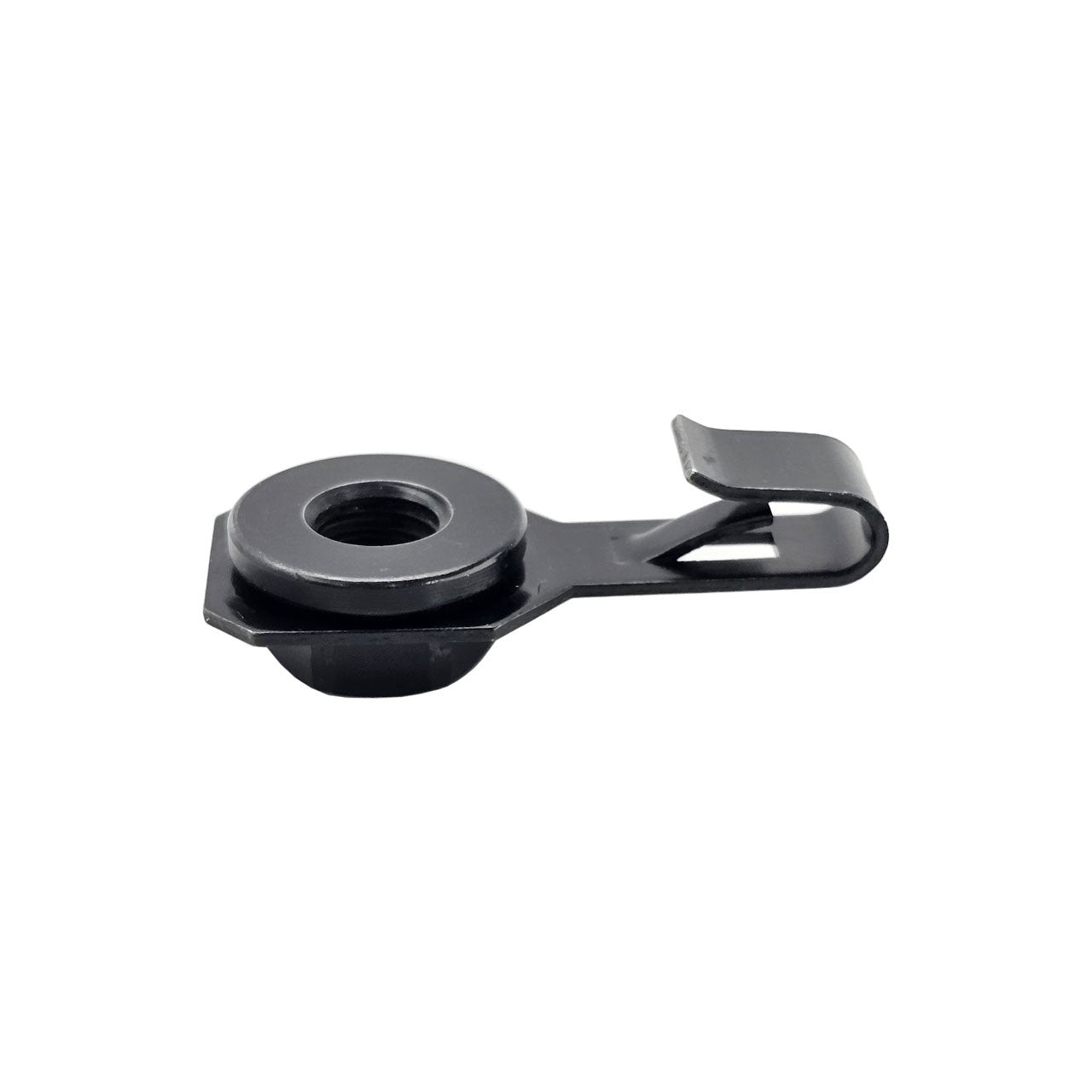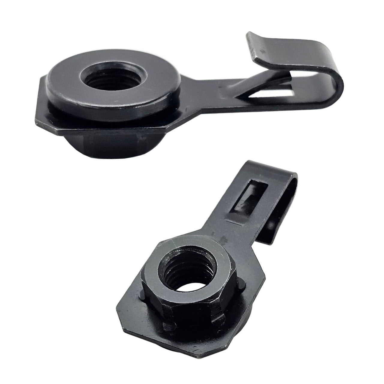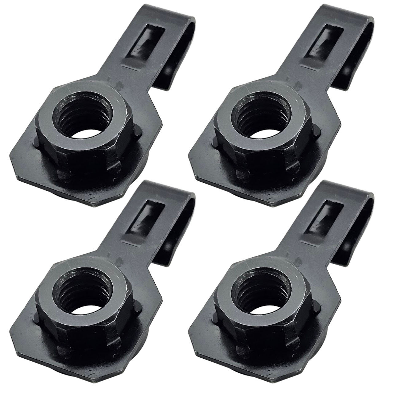 Complete the Restoration of your cars front suspension with these OEM style K-member J-Nuts for your 79-04 Mustang. These J-nuts slide onto the lip of the upper front subframe and stay in place when installing the 4 main K-member bolts. The stock J-nuts rust and fatigue over time, not surprising for hardware that is 40+ years old in some cases. Made from the same strength material as the OEM hardware with a clean black finish for a factory look to your car. This style J-nut allows the nut to stay in place while you tighten your K-member from below so you don't have to mess with a wrench up top.